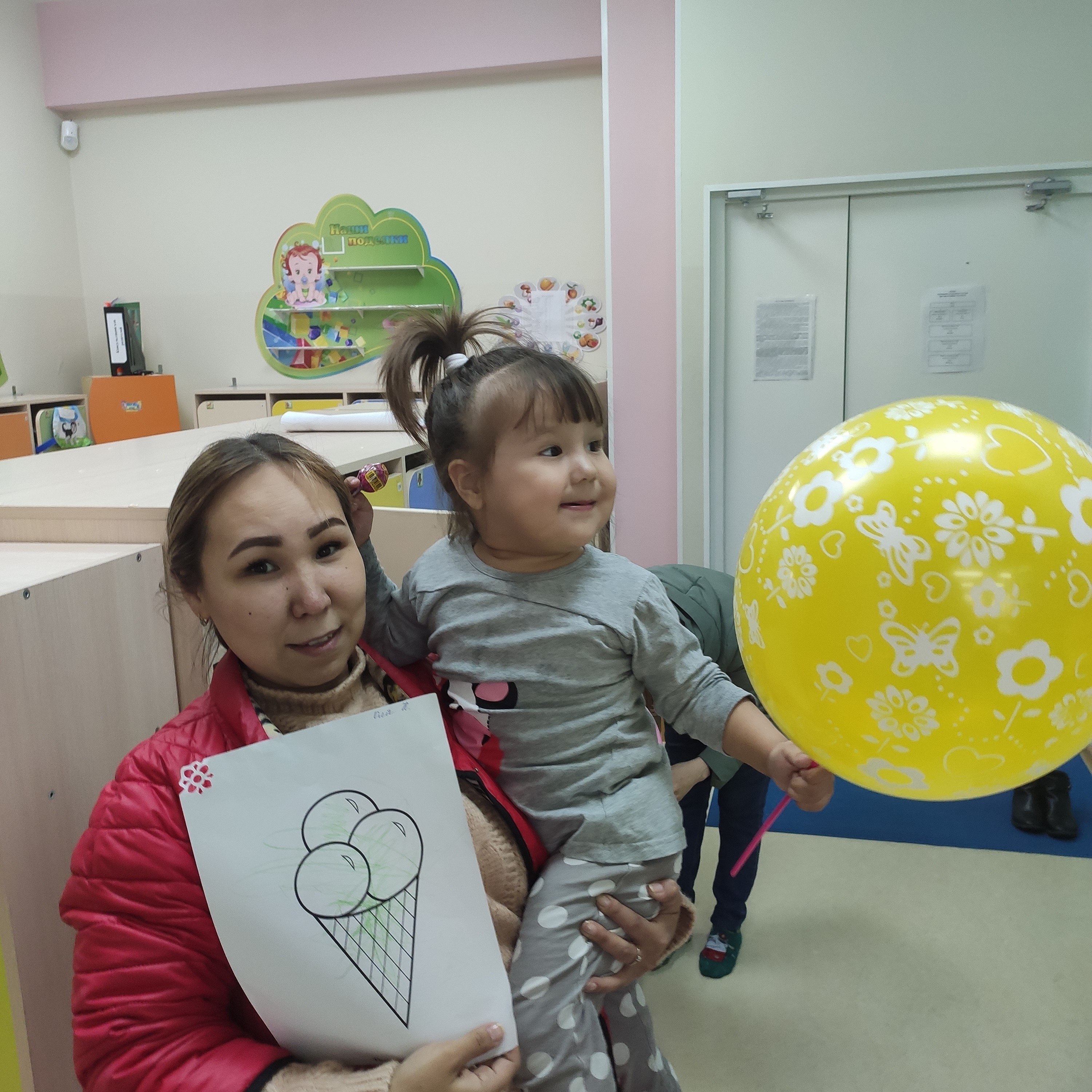 В конце дня воспитатели поздравили своих воспитанников яркими воздушными шариками и сладкими презентами. Было очень видеть радостные лица деток и их родителей!Также воспитали создали видеоролик с фотографиями родителей и радостными детками в честь праздника. Получилось душевно и тепло!