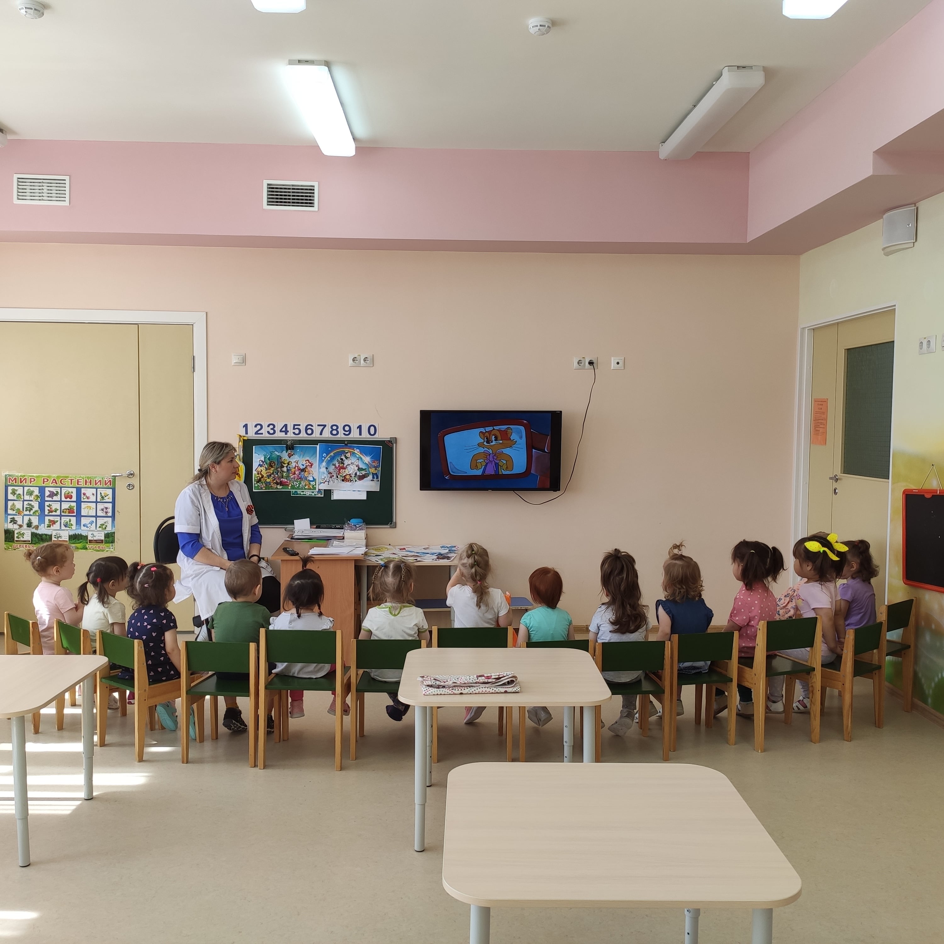 В группе №6 Снежинка прошли тематические занятия, посвященные любимым мультфильмам. Детям была представлена презентация о мультфильмах, был показан иллюстрационный материал, проведена беседа о героях. Ребятам были показаны любимые мультфильмы. Дети были в восторге! Заключительным этапом было раскрашивание красками любимых героев – смешариков. Дети очень их любят! Смешарики получились очень классными!