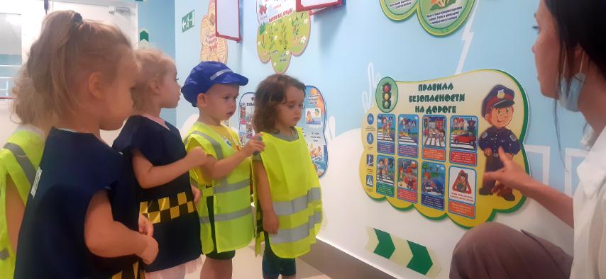 В неделю преподавания предмета ОБЖ в 5 группе было проведено занятия по ПДД. На информационных стендах ребята изучили как правильно переходить через дорогу и как себя вести на дороге. На игровом столе разыграли ситуацию, мальчику Мише и девочке Кате помогли дойти из парка домой. Узнали что такое светофор, и что означает каждый цвет. На матах поиграли в подвижную игру "едем из садика домой".