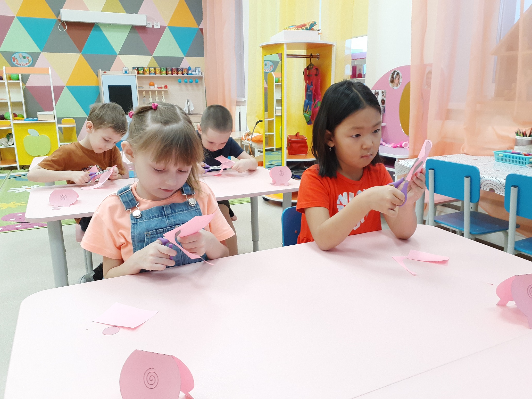 работать с бумагой (упражнялись в приеме резания бумаги
