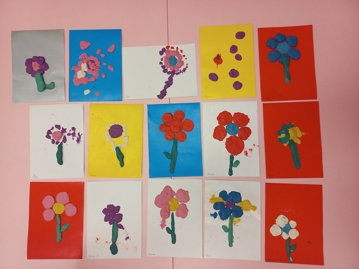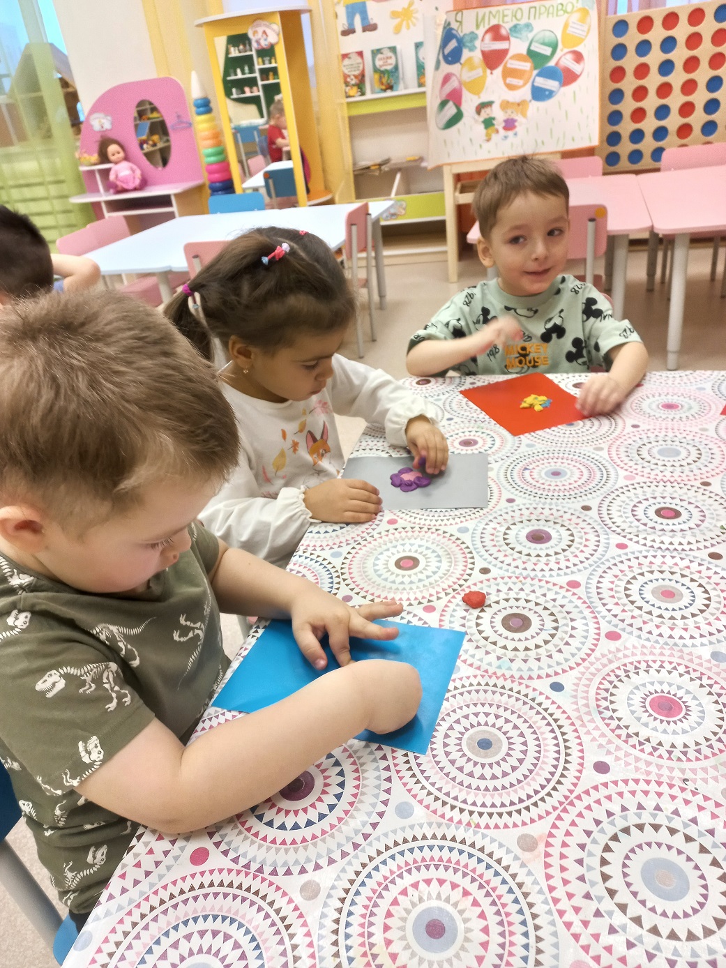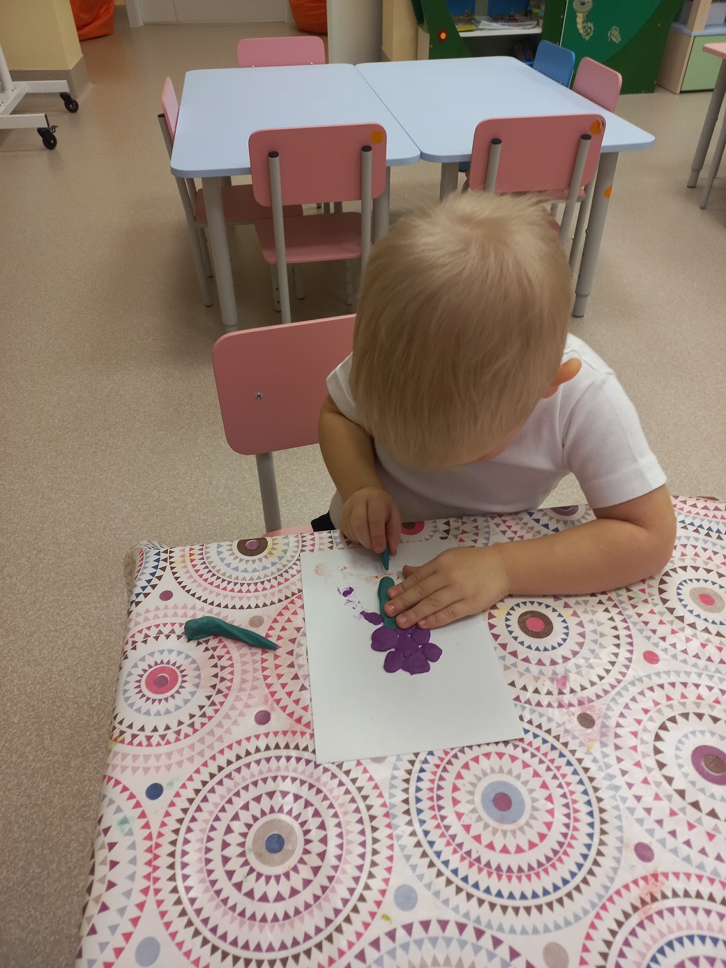 В группе Радуга прошло занятие по художественно-эстетическому развитию. В гости на занятие к детям пришла кукла Маша, которая забыла подарить своей маме цветы. Ребята с удовольствием проявили желание ей помочь, они выполнили цветочки из пластилина. Ребята проявили интерес к занятию.У них получились очень красивые цветы!