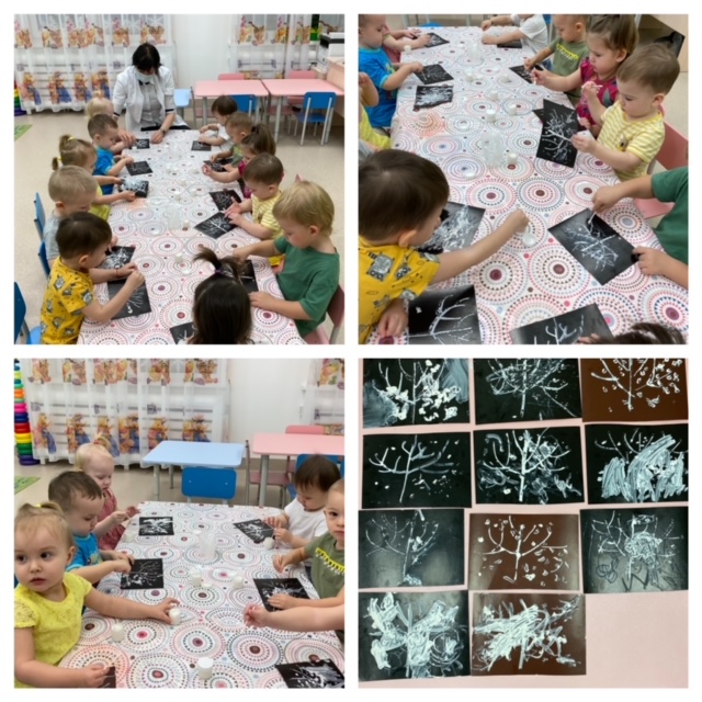 Игра - занятие по рисованию «Снег» Цель: обогащать представления детей о зиме . Учить рисовать снег ватной палочкой . Развивать мелкую моторику рук. Воспитатель : Идрисова Р. И.