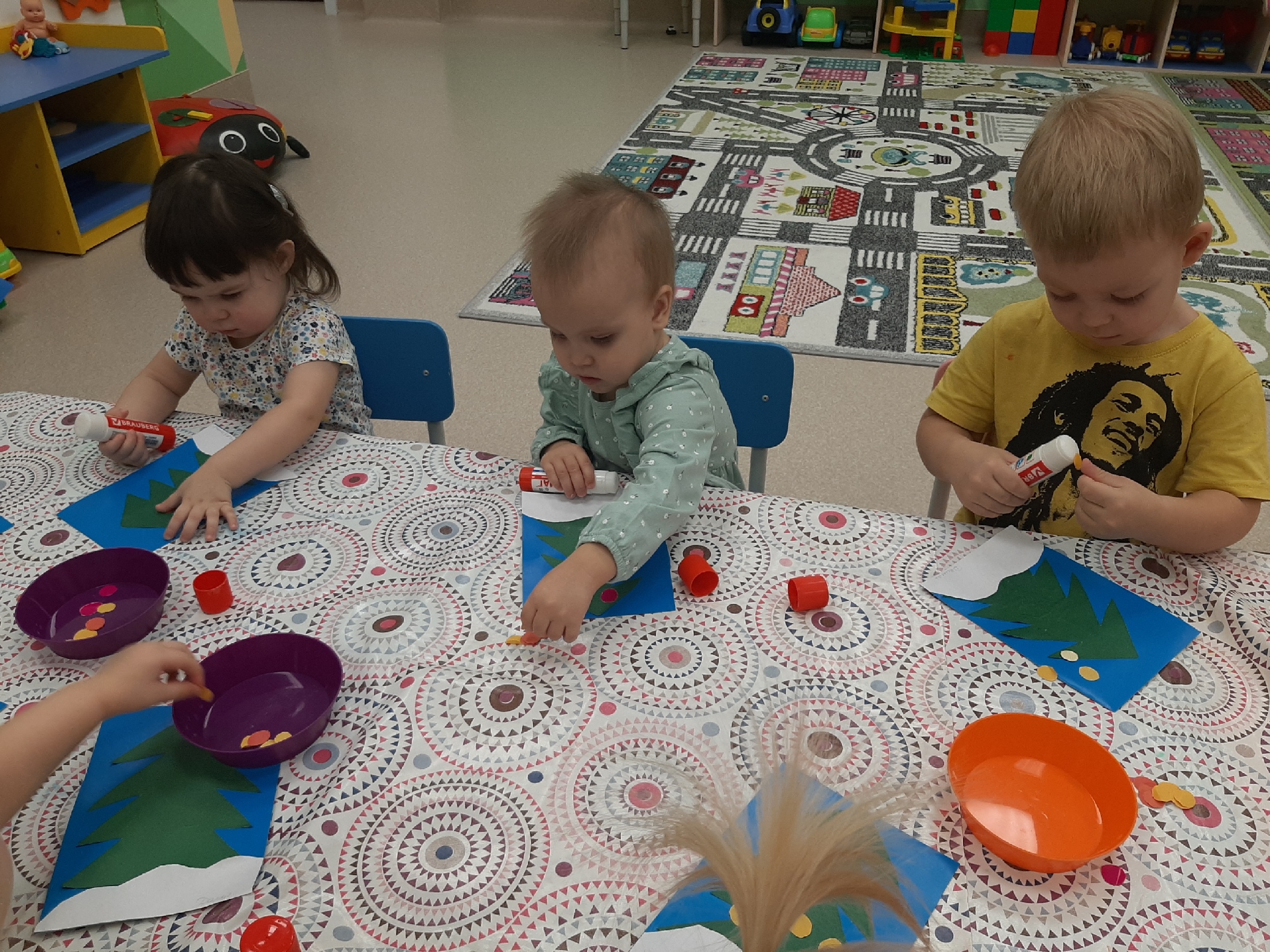 Аппликация "Елочка" Цель: Учить детей создавать образ нарядной праздничной ёлочки на основе незавершенной композиции (аппликации силуэта ёлки). Воспитатель: Ощепкова М.В.