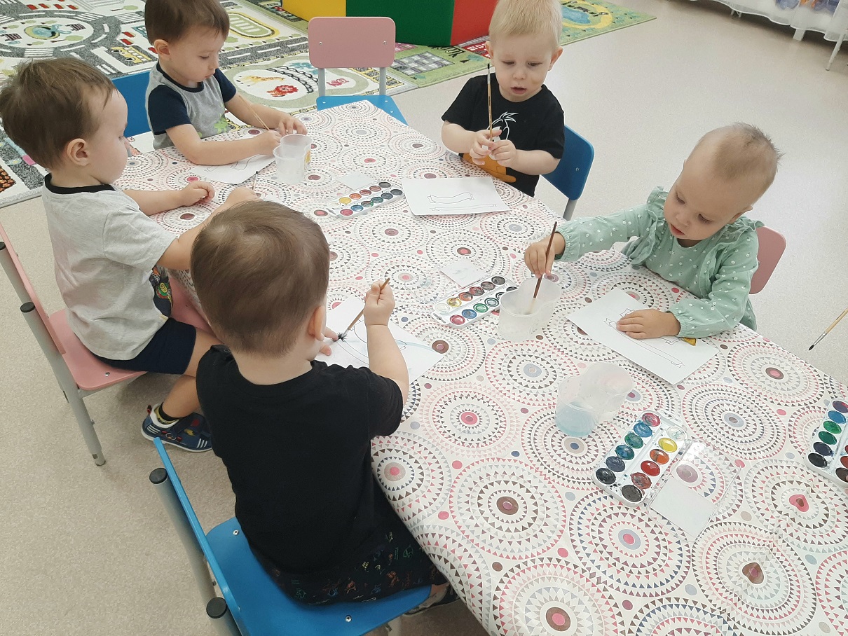 Цель: Продолжать учить детей закрашивать рисунок, не выходя за контур.