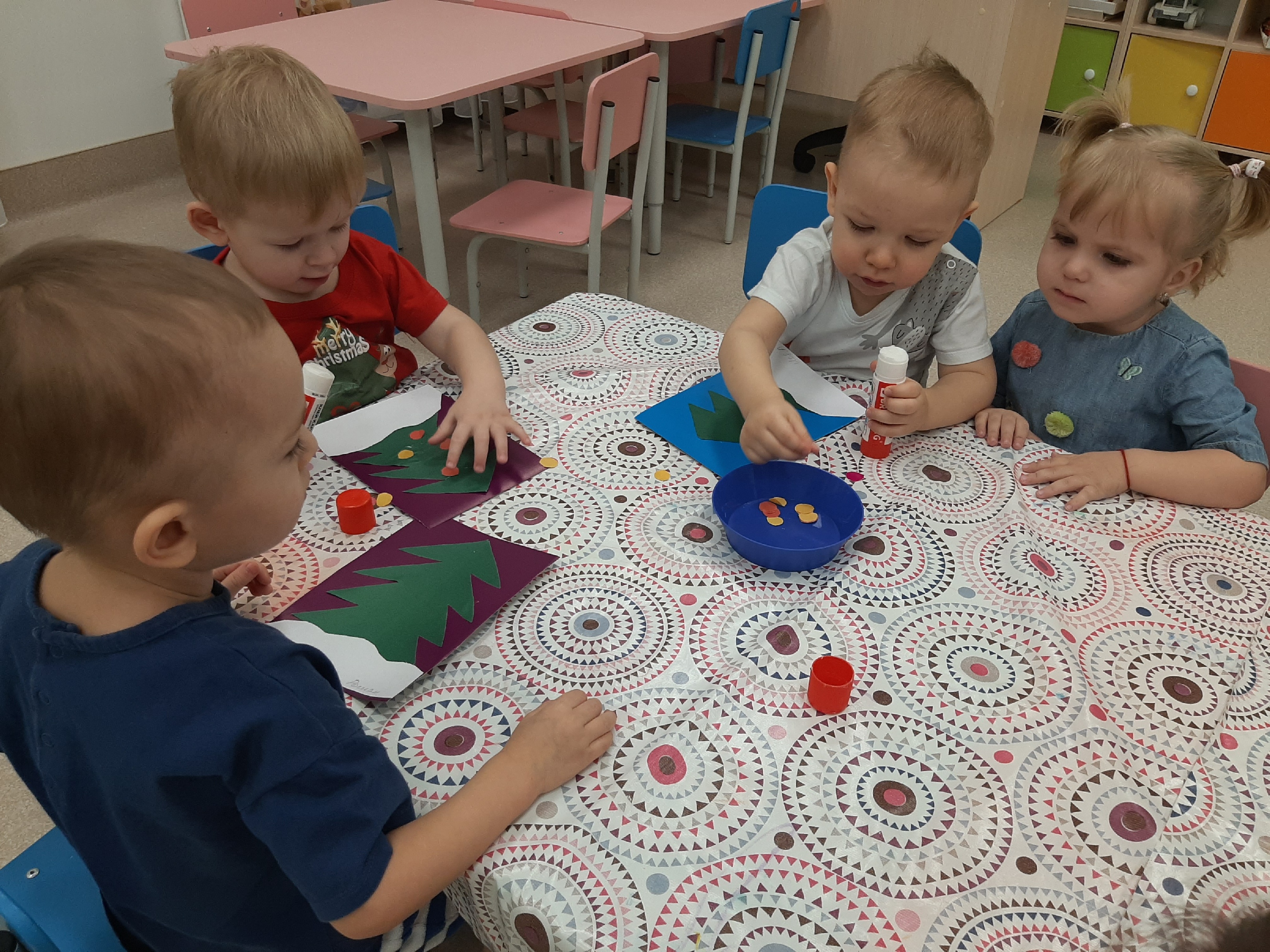 Цель: продолжать учить детей рисовать в нетрадиционной технике методом «тычок» (ватными палочками).