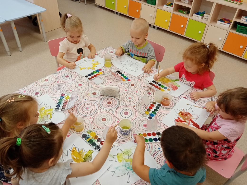 Занятие по художественно-эстетическому развитию. Рисование. Тема: Листья жёлтые летят» Цель: учить детей раскрашивать лист; упражнять в умении правильно держать кисть, пользоваться краской, тряпочкой, промывать кисть. Закрепить желтый цвет. Воспитывать усидчивость. Воспитатель: Леванова А.А.