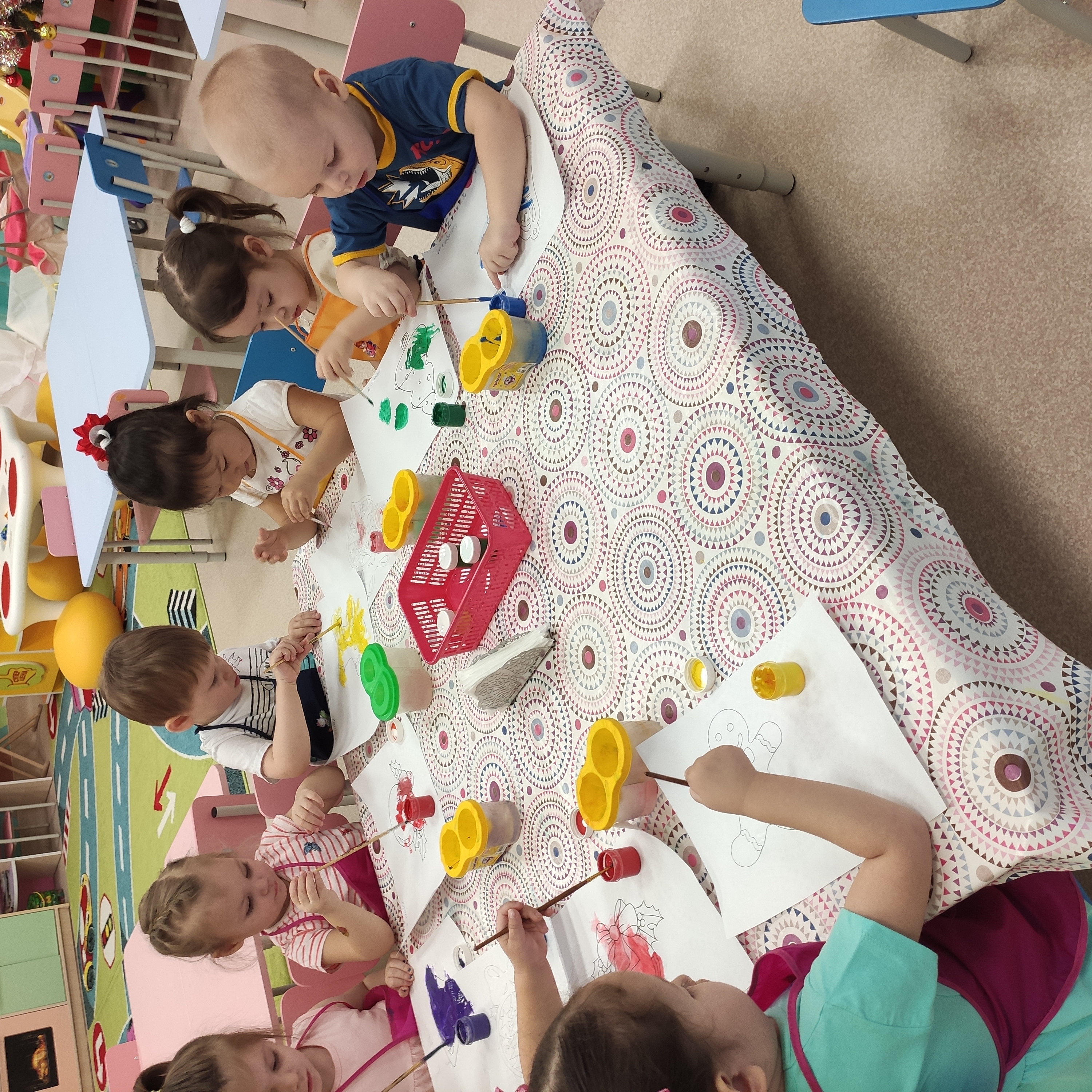 Цель: развить творческие способности детей, закрепить умение держать кисть, развить внимание и восприятия цвета, воспитывать интерес к изобразительной деятельности, создать радостное настроение – нарисовать свою елочную игрушку.