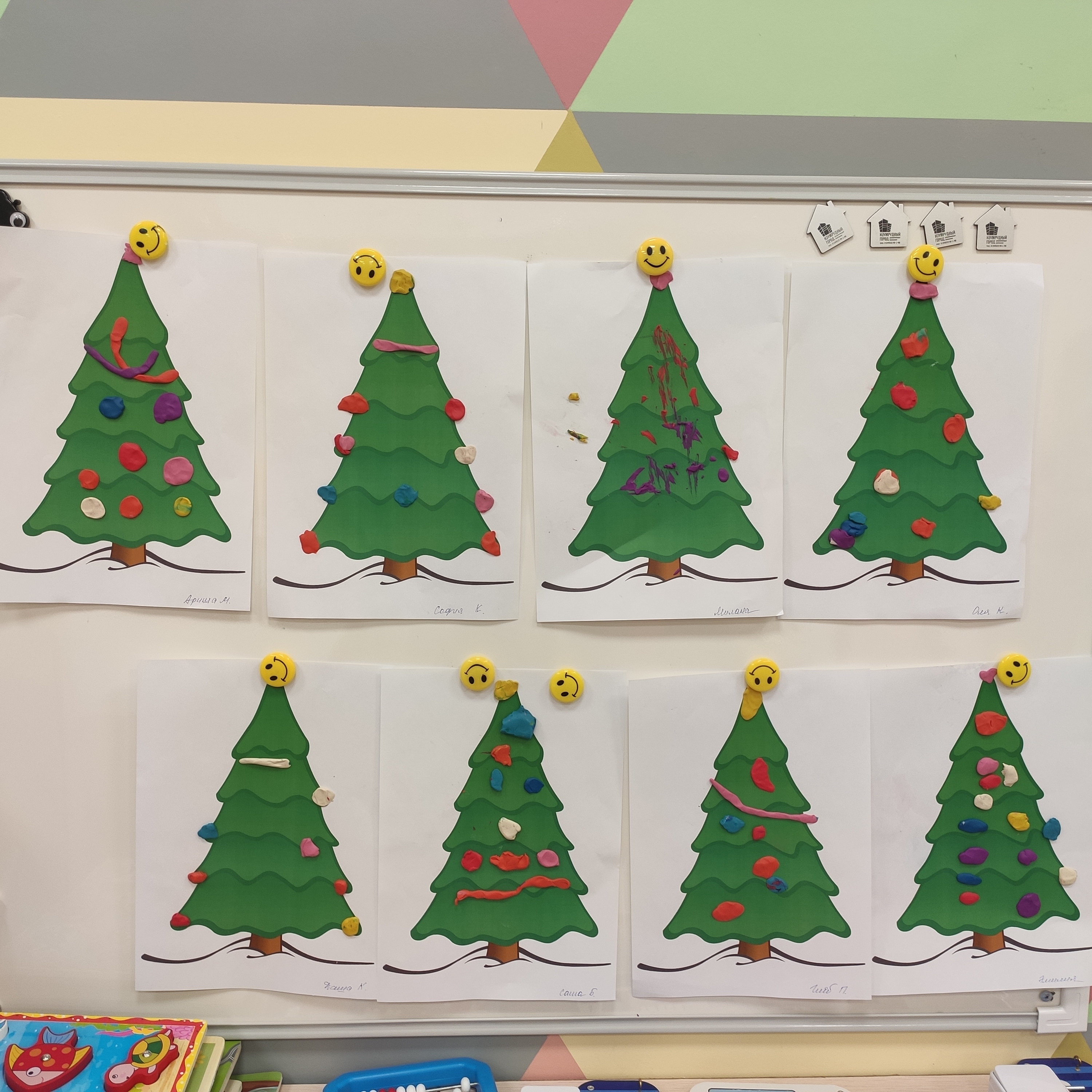 Дети с удовольствием украшали елочку шариками, гирляндами из пластилина. Белочке очень понравились нарядные елочки. Она поблагодарила ребят и поспешила к себе в лес, ведь ей еще столько нужно успеть к празднику.Воспитатель: Запорожская И. В.