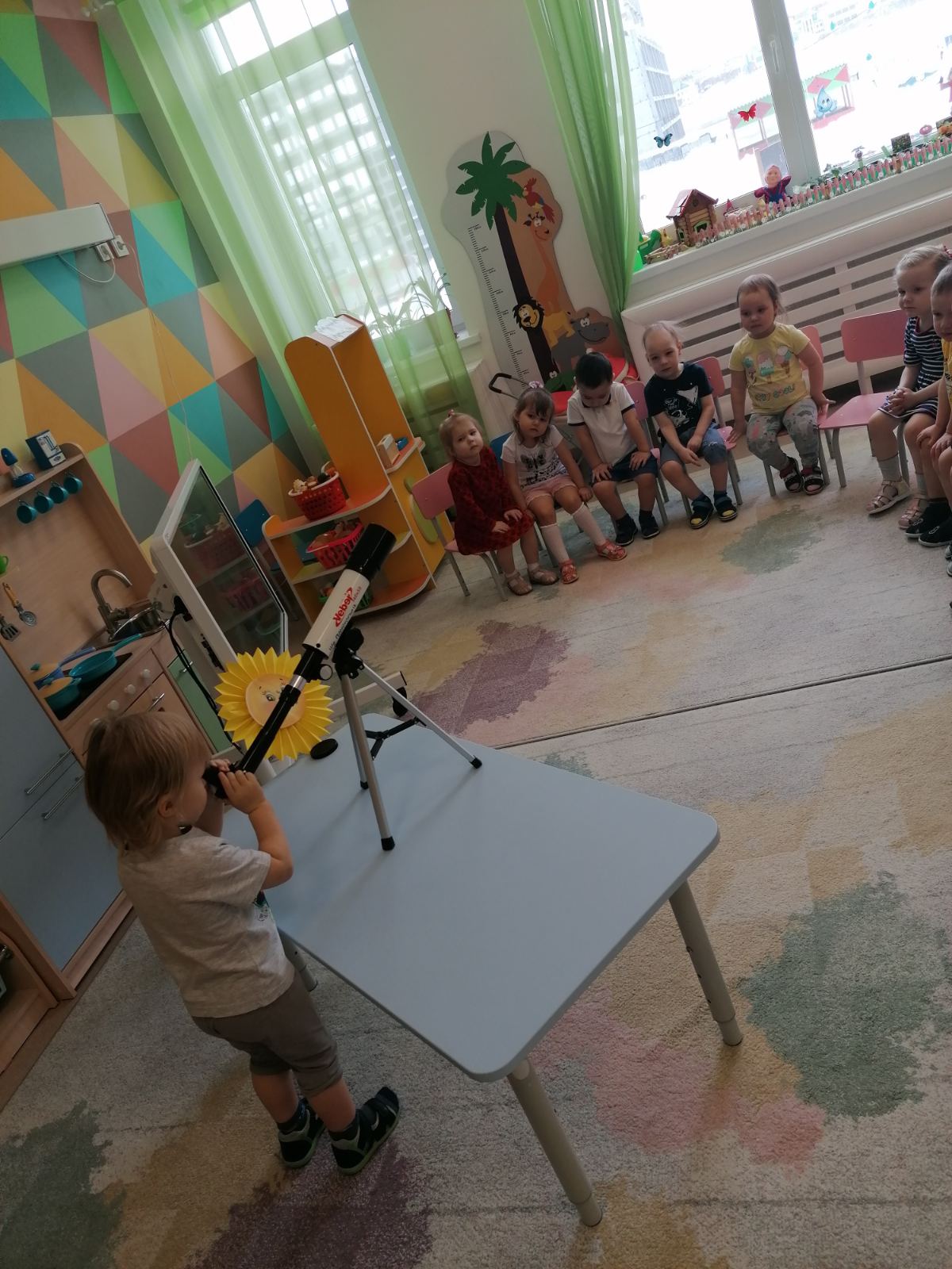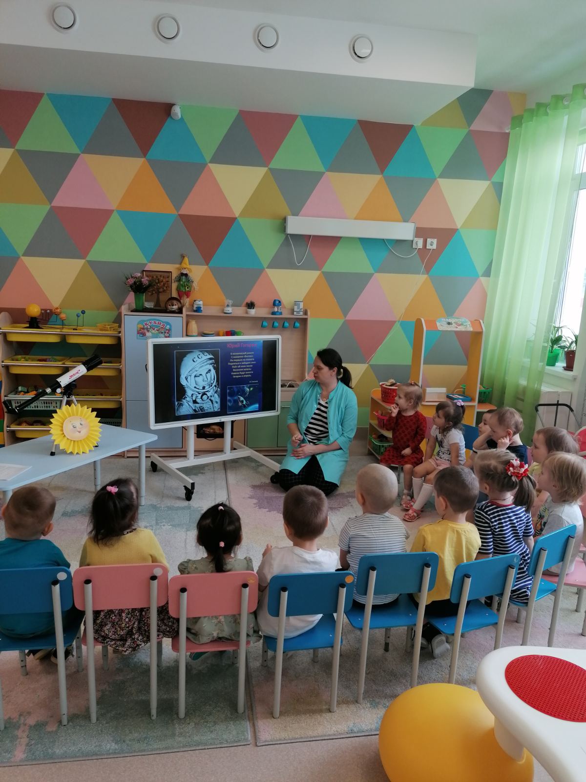 Космос – это всегда интересно, волнующе, загадочно! С давних пор люди интересовались устройством и расположением солнечной системы. Но как доступно рассказать дошкольникам о далеких планетах, о мерцающих звездах, о Луне? В нашем детском саду есть специальная модель Солнечной системы, где загадочная Венера, пурпурный Марс, Сатурн, красавица Земля и другие планеты вращаются вокруг Солнца, телескоп, с помощью которого детки рассматривали небо. Как заманчив и красив неизведанный мир! Рассматривая с ребятами модель, мы беседовали о солнечной системе, в которой находится наша планета, о первом космонавте Юрии Гагарине, о Солнце, отгадывали загадки, играли, превратились в настоящих космонавтов и отправились в путешествие по космосу.