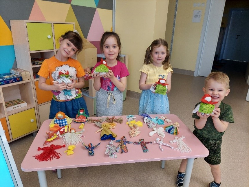Одним из важных моментов в изготовлении игрушки является то, что её можно изготовить без иглы и ножниц. Развивать и совершенствовать навыки работы с тканью, рассчитывать количество ткани используя глазомер, совершенствовать технику скрутки и техника завязывания узлом, восприятие геометрических форм и объединение части в целое, мышление, самостоятельность, развитие мелкой моторику рук.