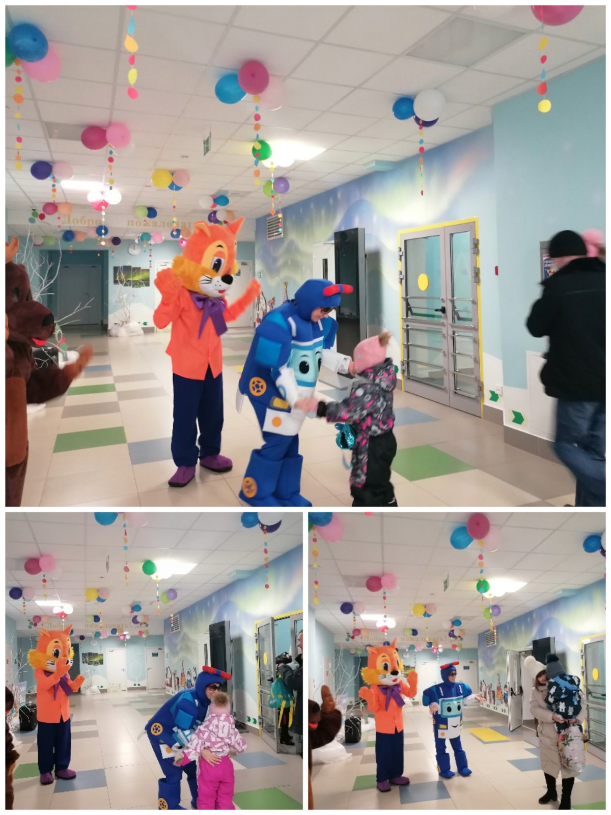 Сегодня воспитанников детского сада "Северное сияние" после дистанционного обучения встречали персонажи из любимых мультфильмов: Кот Леопольд, Поли Робокар и храбрый Оленёнок Айхо. Сказочные герои подарили детям смех, радость, отличное настроение и море позитива.