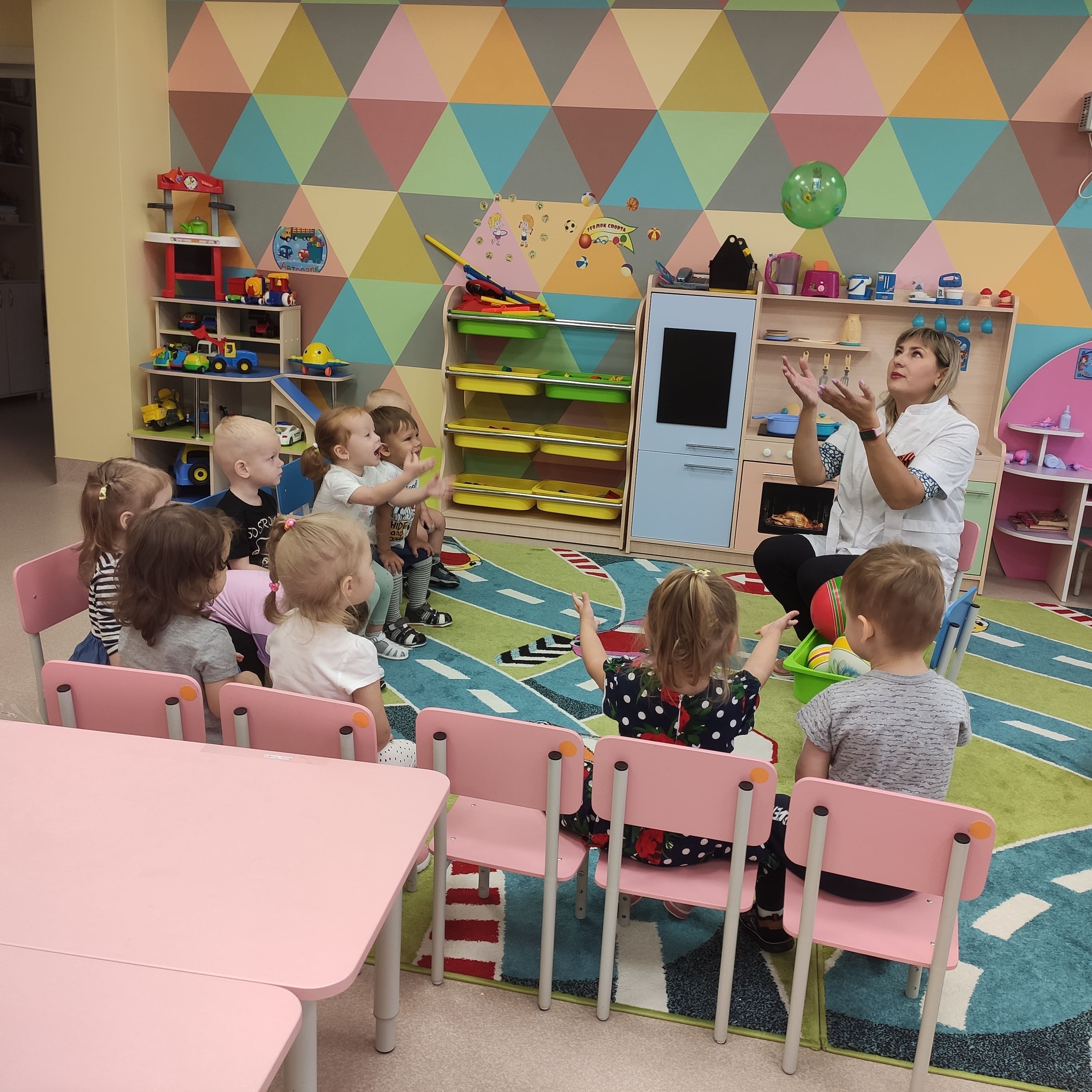 Игра в мяч. Игра – занятие со строительным материалом. Группа "Снежинка"