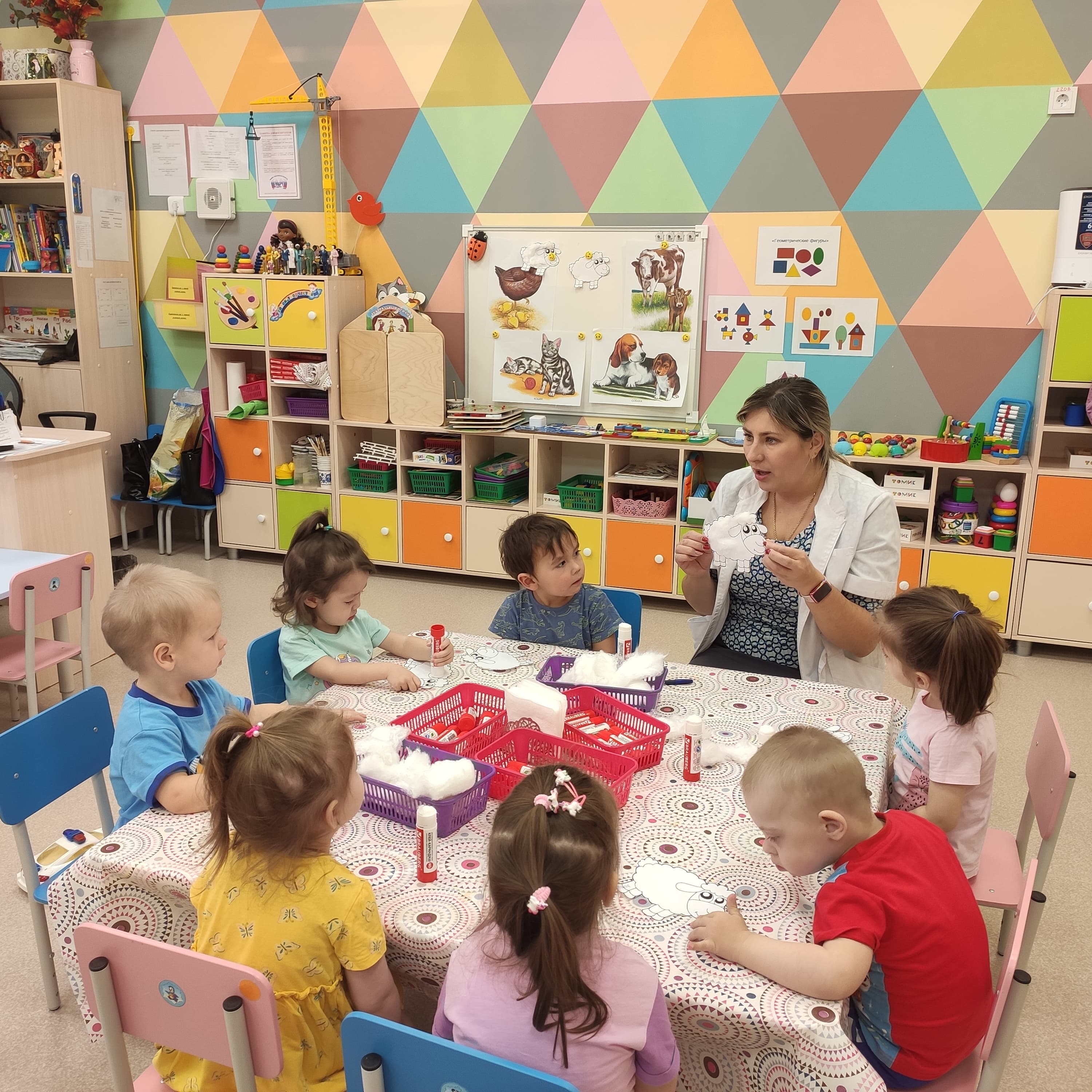 Художественно – эстетическое развитие. Аппликация. Тема: «Домашние животные».  «Кудрявая овечка пасется на лугу».